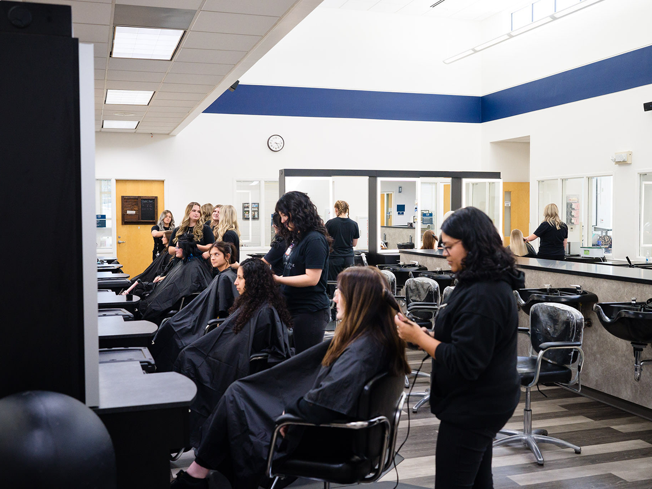 The Cosmetology curriculum is designed to provide competency-based knowledge, scientific/artistic principles, and hands-on fundamentals associated with the cosmetology industry. The curriculum provides a simulated salon environment, which enables students to develop manipulative skills.